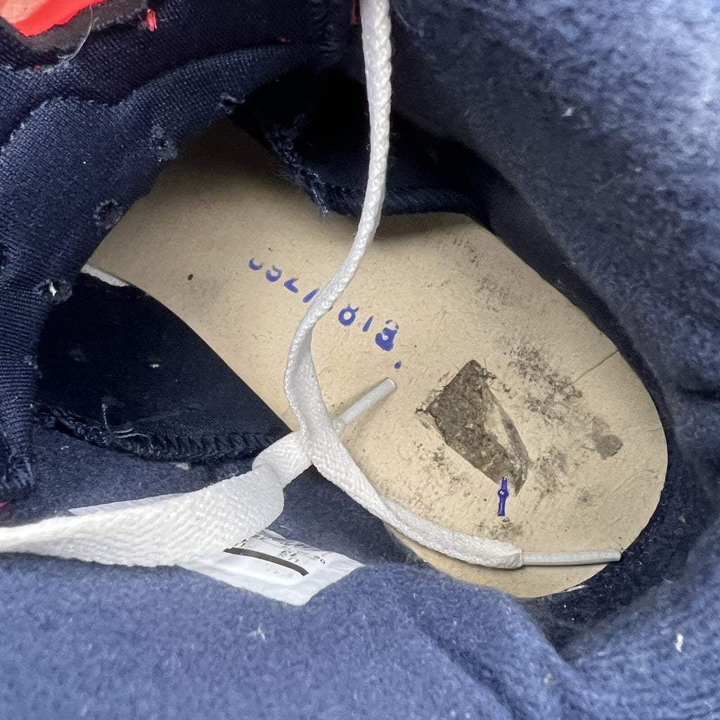 Flaws: Scratches and scuffs on upper and heel, Missing insoles